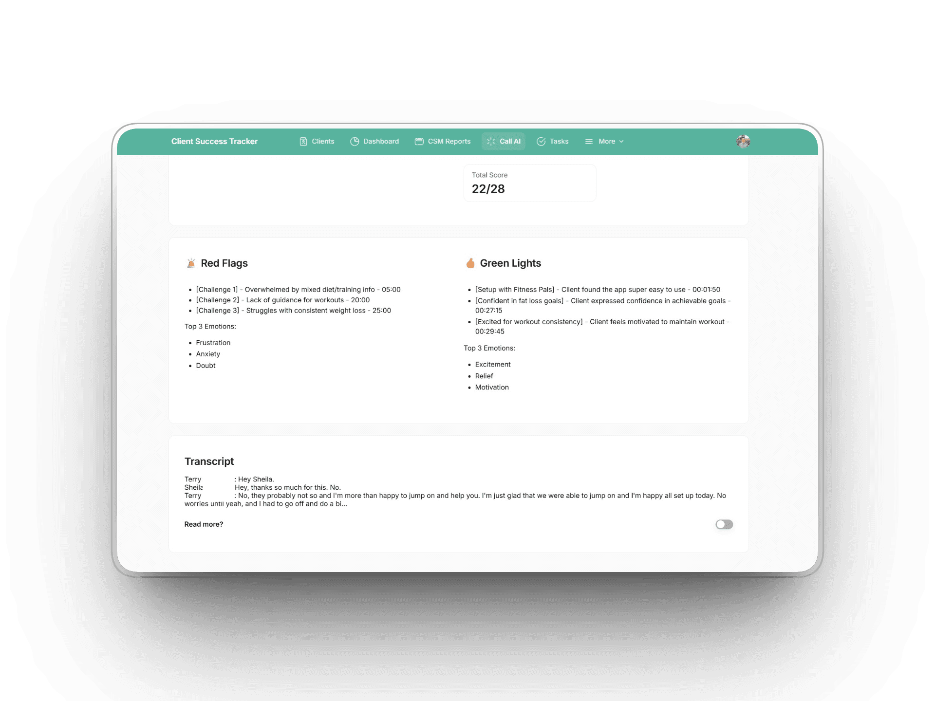 Directors at a coaching platform had zero visibility into client interactions across thousands of recorded calls. Reviewing each one manually was impossible, so unhappy clients and missed follow-ups were slipping through the cracks.