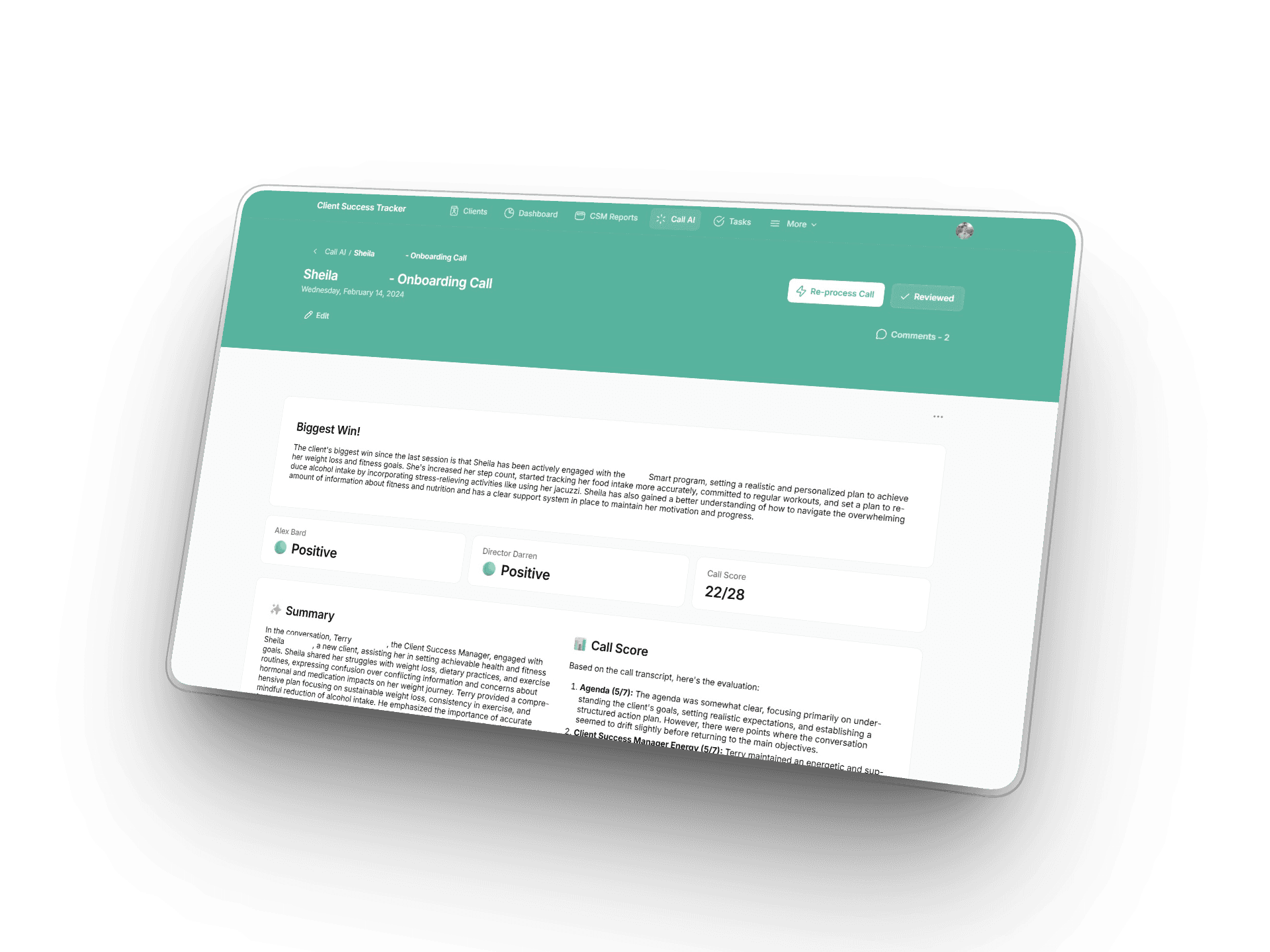 Over 5,000 hours of manual review eliminated. Directors now have concrete, actionable feedback for every client. Faster intervention on at-risk accounts and better accountability across the board.