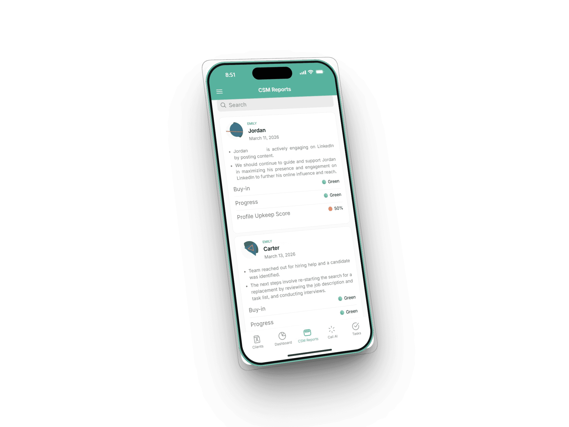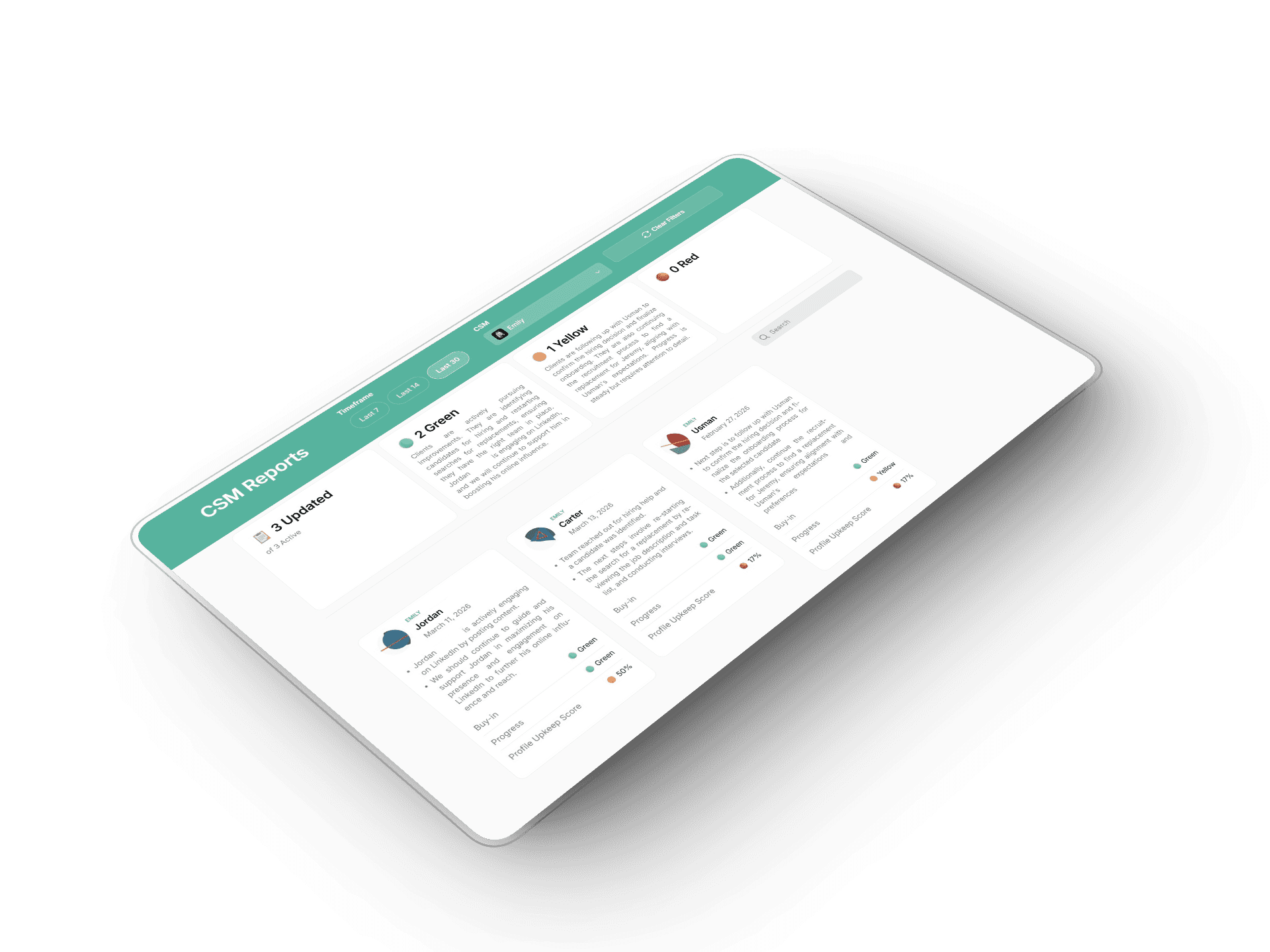 Managers at a multi-team coaching company had to either click into each client account one by one or sit through long meetings just to get status updates across hundreds of clients.